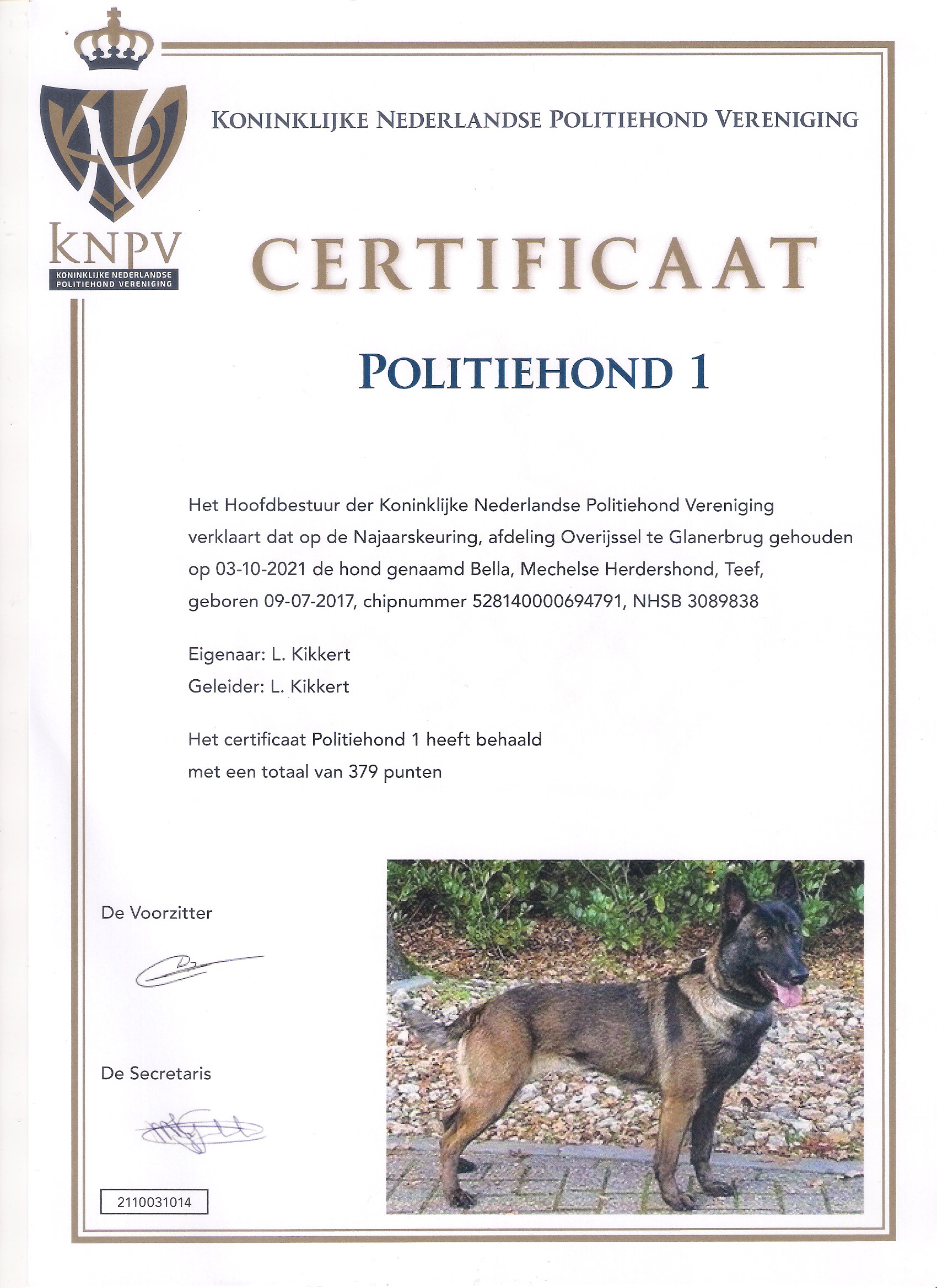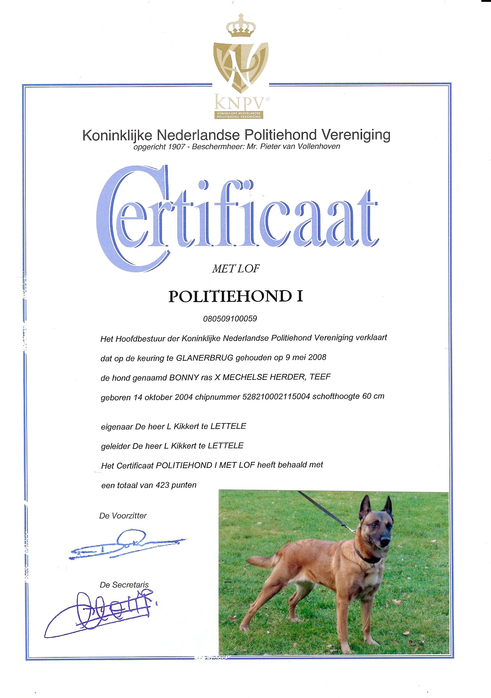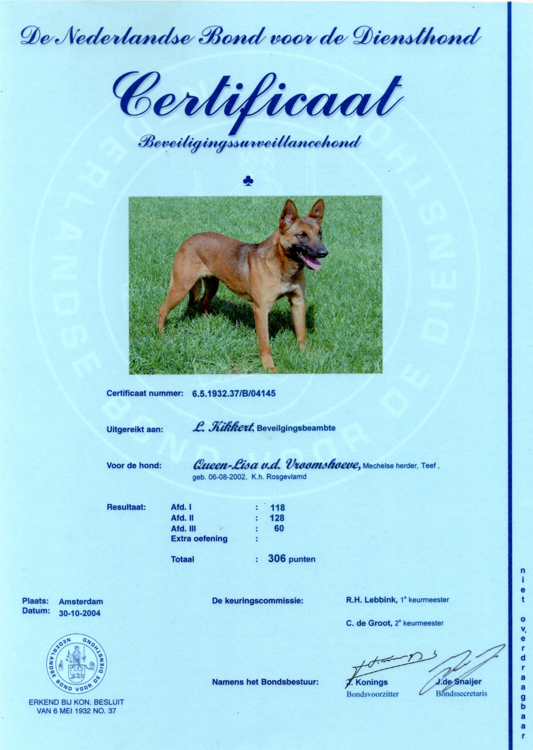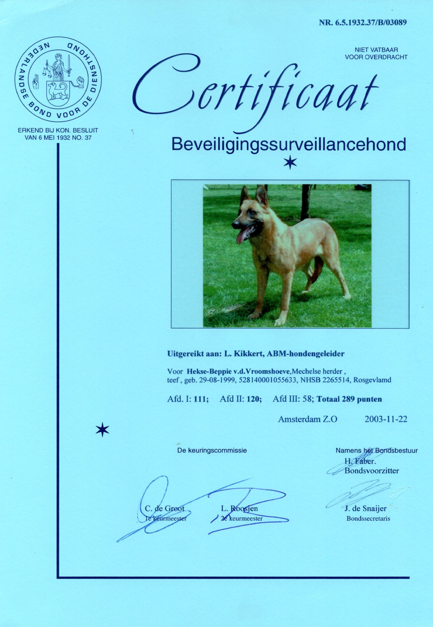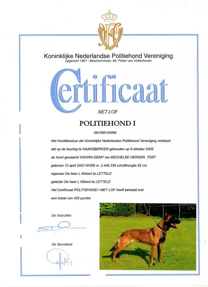Lobbes van de Vroomshoeve, IGP III 286 (In Thailand behaald door mij)