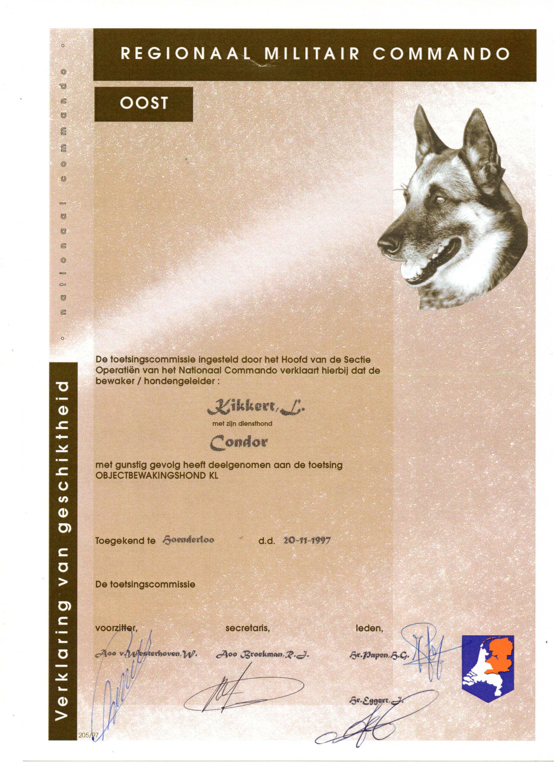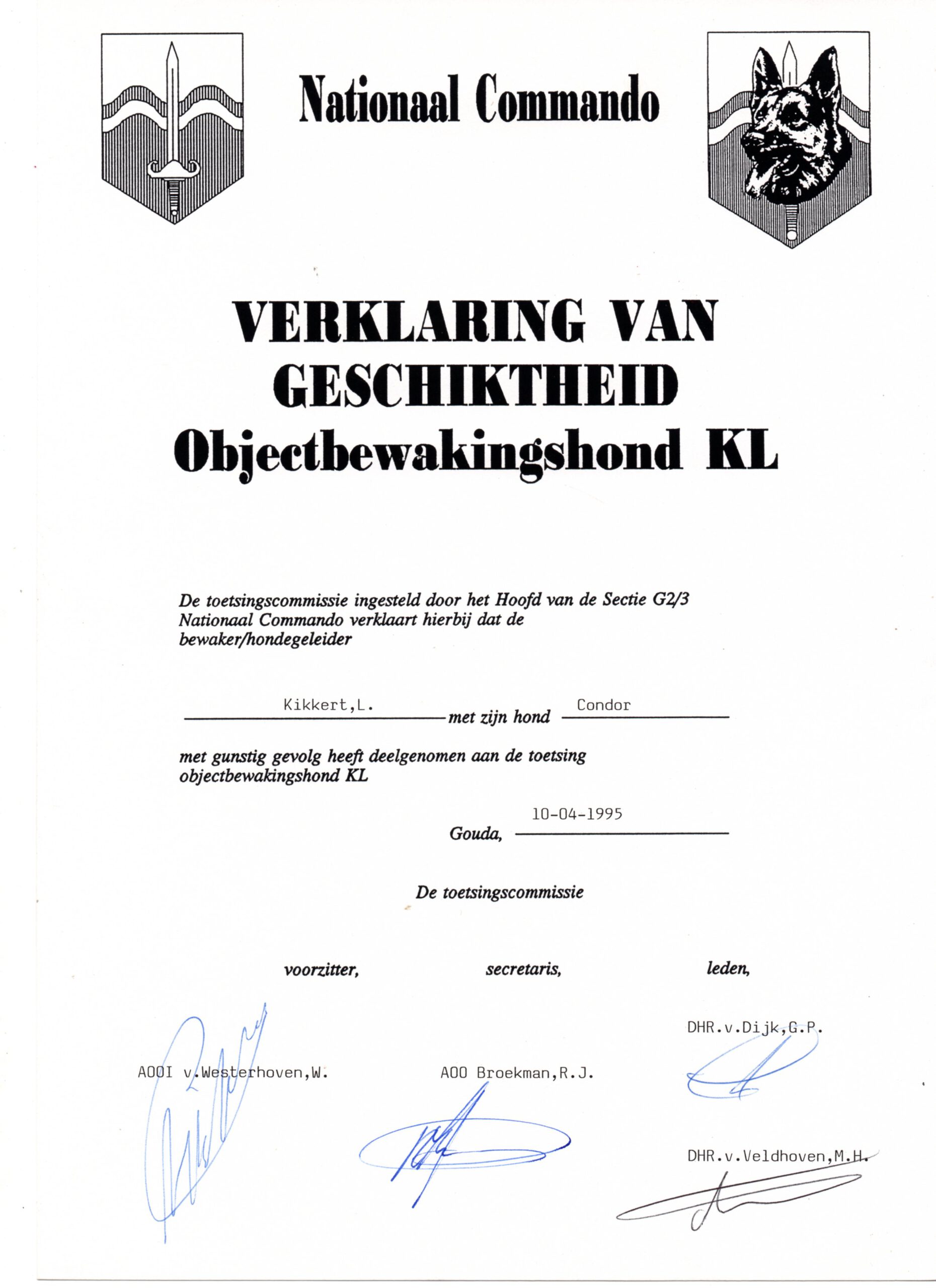 Remy, 1990, Dienst hond, Obj. bew. 04-1992 Klu, NTC, Condor, 1996, mijn 2e dienst hond Klu, NTC