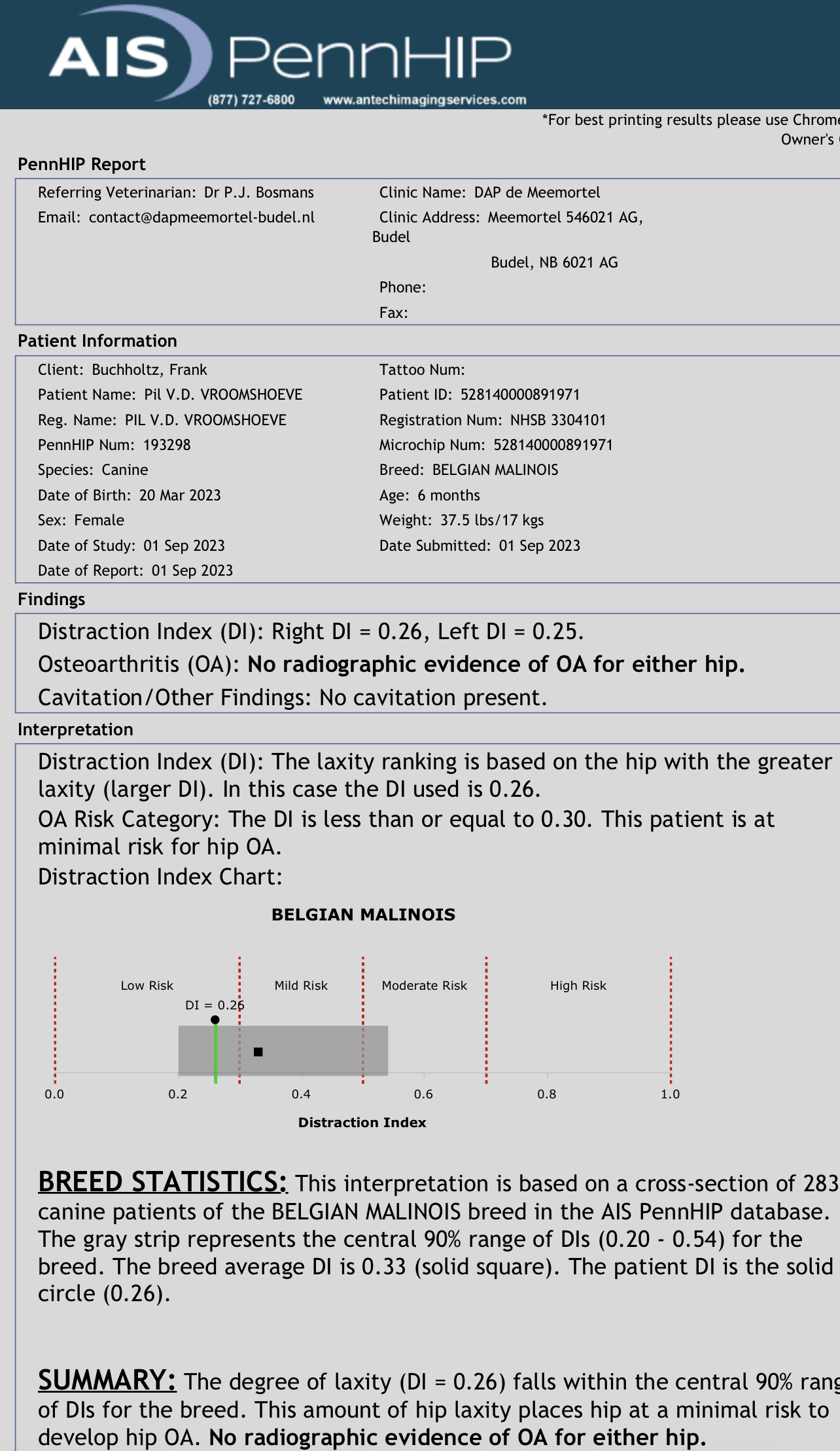Vrij van genetische afwijkingen Embark DNA test ⇐ click op de link voor de uitslag.